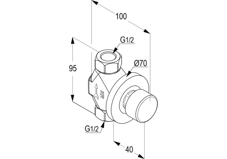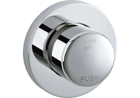 Outdoor concealed self-closing valve with push-type timing device and durable chrome finish. Wall-mounted with sturdy metal handle and 1/2" connection. Designed for efficient water control with a maximum flow time of 15 seconds. Ideal for outdoor areas, public spaces, and commercial use.