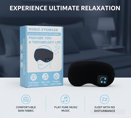Experience total darkness and pressure-free comfort with the DreamTune Sleep Mask. Adjustable nose-wire blocks light, while soft cotton wings prevent eye pressure. Made with breathable, skin-friendly materials, it’s perfect for home, travel, naps, or meditation. Built-in Bluetooth provides 8–10 hours of wireless music, fully charging in just 2 hours. Lightweight, foldable, and travel-ready for men, women, and teens.