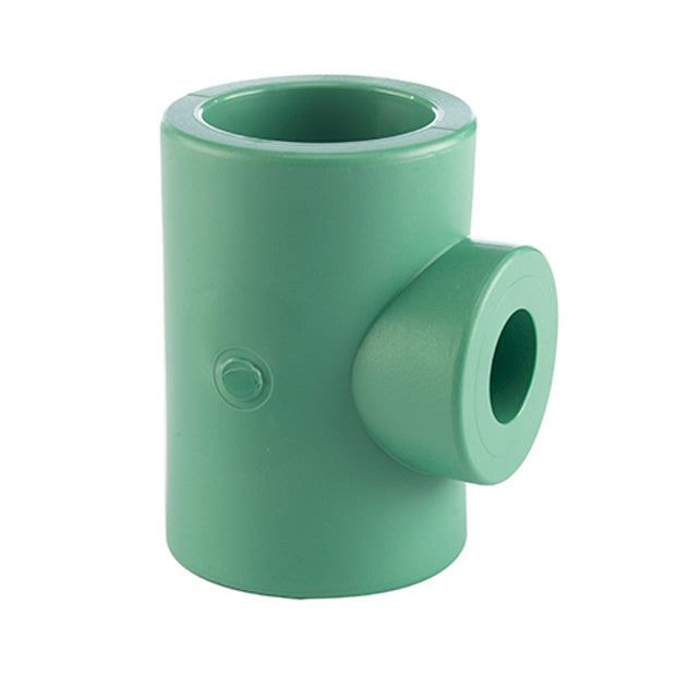 The PP-R Tee Reduced 90° SDR 6 is designed to connect one main pipe with a reduced branch at a 90-degree angle in hot and cold water supply systems. Manufactured from high-quality Polypropylene Random Copolymer (PP-R), it ensures a strong, leak-proof, and long-lasting connection for demanding plumbing applications.