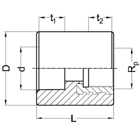The precision-molded female thread conforms to EN 10226 (ISO 7), ensuring a secure and leak-free joint. For best sealing results, PTFE tape is recommended during installation.